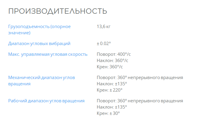 Двигатели Ronin 2 в восемь раз мощнее предыдущих моделей, что позволяет ему работать на постоянной скорости более 120 км/ч с камерой весом около 13,6 кг. Мощность идет рука об руку с точностью: энкодеры двигателей позволяют сохранить прежнюю точность с погрешностью всего лишь 0,02°.