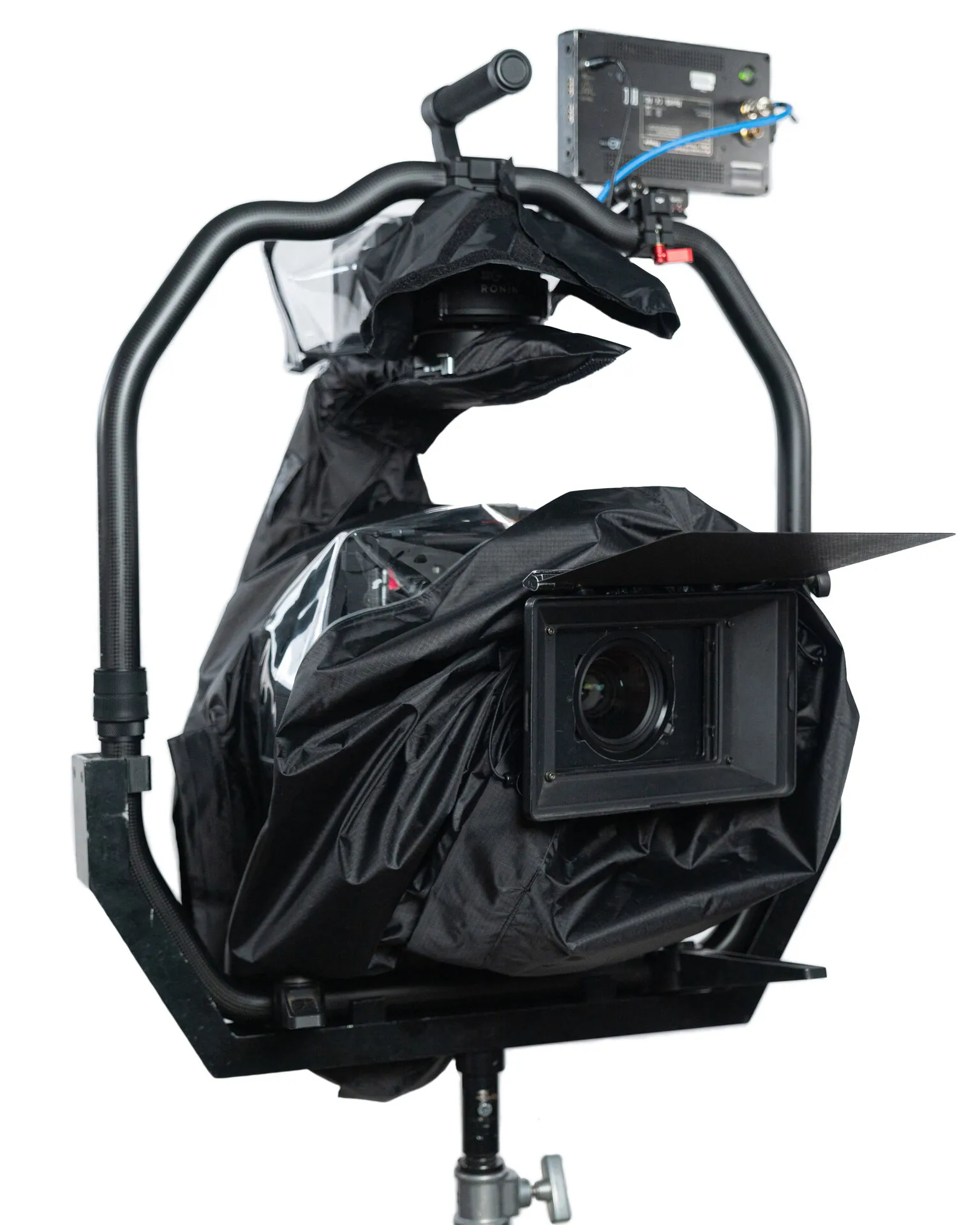 Профессиональная защита от осадков для системы стабилизации DJI Ronin 2. Выполнен из легчайших материалов: мягкого прозрачного ПВХ и ТПУ пластика и ткани с плетением RipStop, покрытой полиуретановой пленкой и водоотталкивающей пропиткой. Влага не проникает даже если дождевик длительное время находится под атмосферными осадками за счет проклеенных швов.