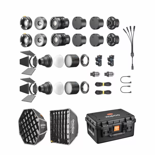 Комплект включает множество светоформирующих насадок с байонетом Godox Mini для создания уникальных световых схем.