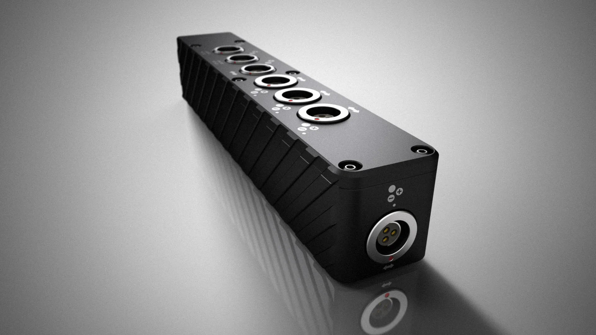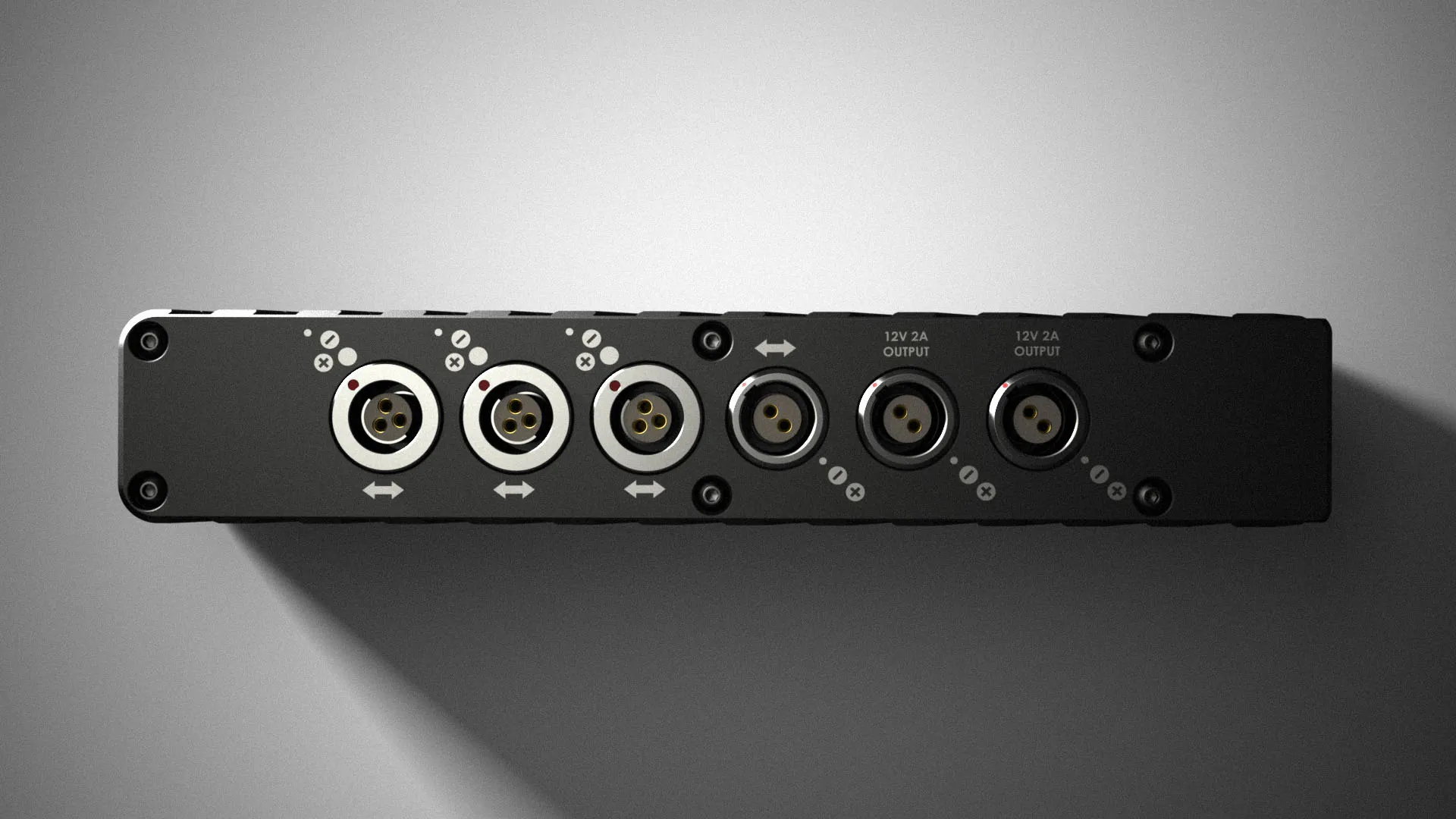 Имеет 8 разъёмов для подключения, 2 из которых являются регулированными выходами 12В 2А (с защитой от обратной полярности), а другие 6 имеют сквозное соединение.